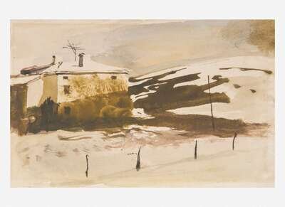 Andrew Wyeth (American, 1917-2009) - Kuerner's House and Barn (Christmas Card)