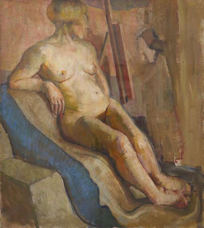 Faye Swengel Badura (American, 1904-1991) - Seated Female Nude Model Posing in a Life Painting Class at PAFA
