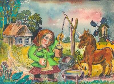 David Burliuk (American/Ukrainian, 1882–1967) - Peasant and Horse