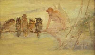 Frederick Stuart Church (American 1842-1924) - Fairy on a Branch with Owls