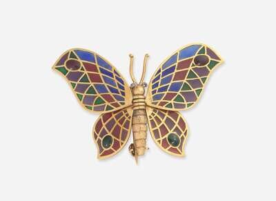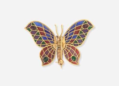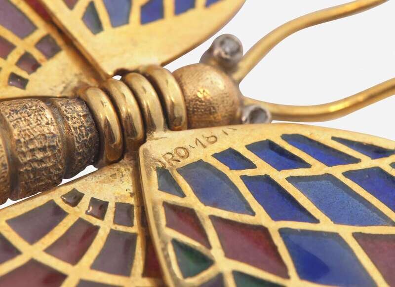 An 18K Yellow Gold and Enamel Articulated Butterfly Brooch