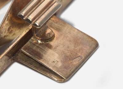 Overall Condition: Some scratches, patina, and wear to metal, stamped “585”, box clasp and two figure-eight safety latches in working order.