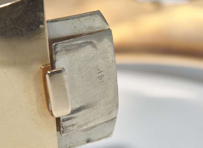 Overall Condition: Some scratches and wear to metal particularly at clasp, box clasp and figure-eight safety latch in working order, stamped “14K”.