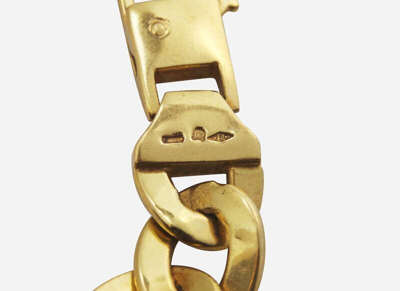 Overall Condition: Minor scratches and signs of wear between links meet, clasp in working order, stamped "750" with Italian hallmarks.