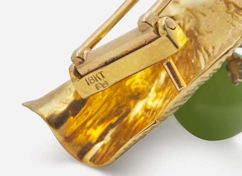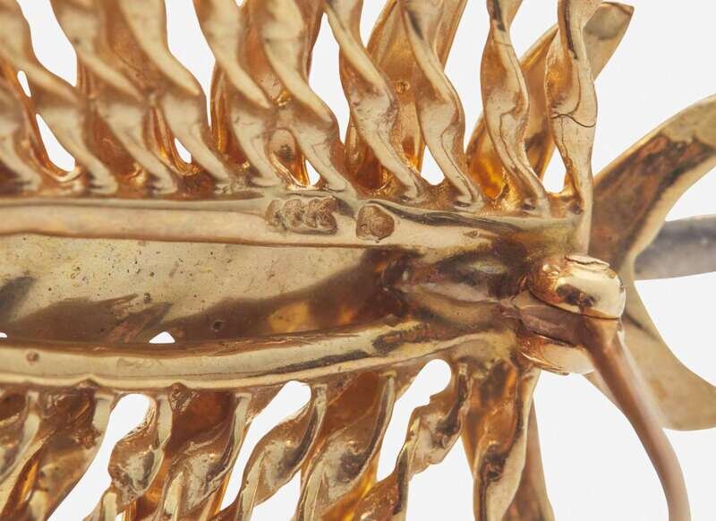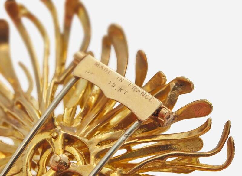 Freeform Brooch: Light scratches and wear to metal, stamped “MADE IN FRANCE 18KT”, trombone clasp in working order.