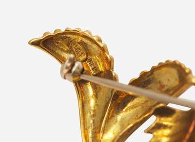 Overall Condition: Significant scratches and wear to metal, significant enamel loss particularly to tail, stamped “ITALY Kt18”, clasp in working order.
