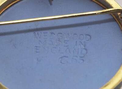 Cameo Brooch: Measures approximately 1 5/8in wide, metal not stamped, testing as 14K, set with a blue and white cameo measuring approximately 34.00mm, back of cameo marked “WEDGWOOD MADE In ENGLAND C65”, clasp in working order.