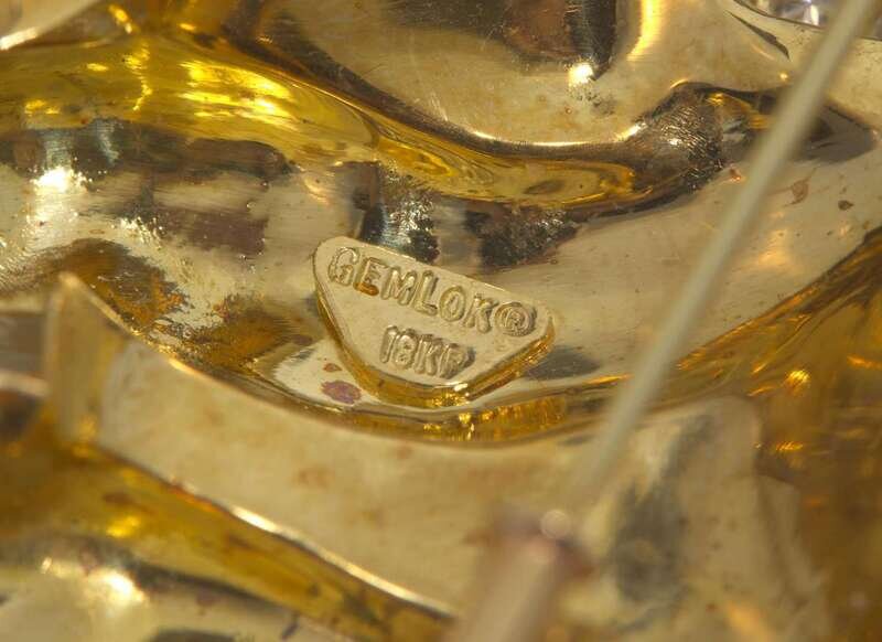Overall Condition: Minor scratches and wear to metal, stamped “GEMLOK 18KP”, trombone clasp in working order.
