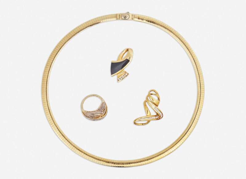 Please note that all information provided such as weight, grade, color, and clarity are approximate and the opinion of the Jewelry Department of Freeman's. All gemstones were measured and graded in their settings unless otherwise noted.