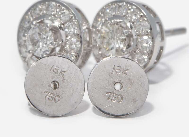 Overall Condition: Minute scratches and signs of wear, earring backs present, stamped "18K 750".