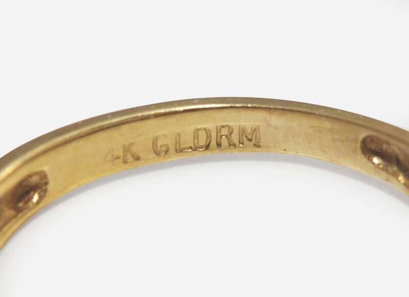 Multi-Color Band: Size 6 ½, light scratches and wear, stamped “14KGLDRM”, set with four square-cut gemstones each measuring approximately 4.00mm x 4.00mm, including peridot, citrine, amethyst, and garnet.