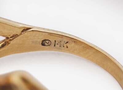 Ring: Size 7, stamped “14K” with maker’s mark, Essex crystal measures approximately 13.77mm.