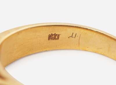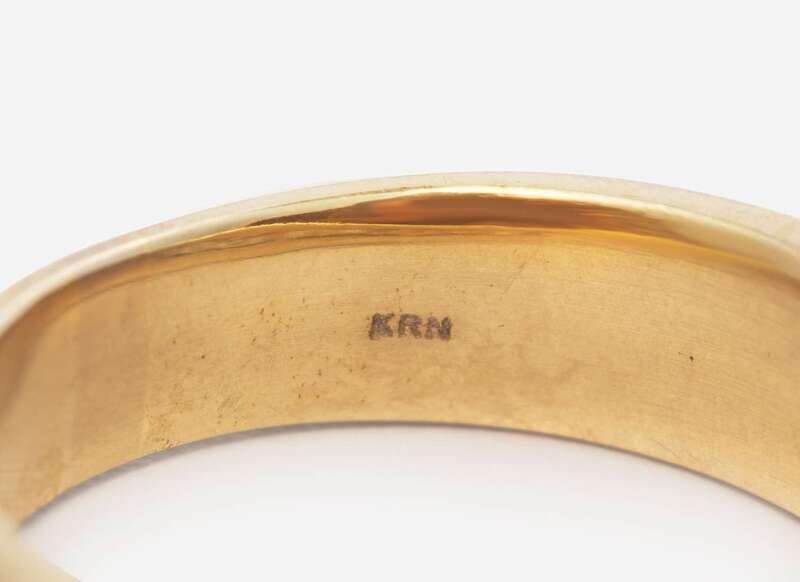Princess-Cut Diamond Ring: Size 10 ½, minor scratches and wear, stamped “14K KRN”, set with nine princess-cut diamonds each measuring approximately 3.15mm x 3.15mm, near colorless (G – J), with SI – I clarity. Total estimated weight of diamonds: 1.40 carats.