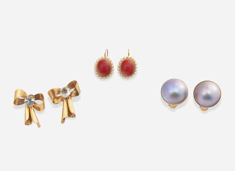 Pearl Earrings Width: 3/4in; Oval Earrings Width: 5/8in; Oval Earrings Length: 7/8in; Bow Ear Clips Width: 1in; Bow Ear Clips Length: 1 1/8in; Weight: 16.9 Gross dwt.