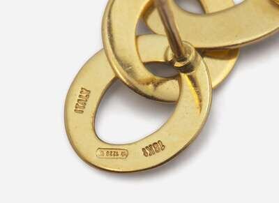 Earrings: Minor scratches and wear to metal, earring backs present, suitable for pierced ears on stud posts, stamped "☆1228VI 18Kt ITALY 750" with signature Roberto Coin ruby.