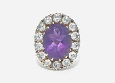 Amethyst: One oval-cut amethyst measuring approximately 11.95mm x 16.00mm.