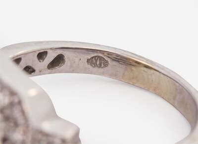 Princess-Cut Diamond Ring: Light scratches and wear, stamped “14K” with maker’s mark, set with four princess-cut diamonds each measuring approximately 2.20mm, twenty round brilliant-cut diamonds each measuring approximately 1.50mm, and four round brilliant-cut diamonds each measuring approximately 2.00mm, near colorless (G – J), with SI – I clarity. Total estimated weight of diamonds: 0.70 carats.