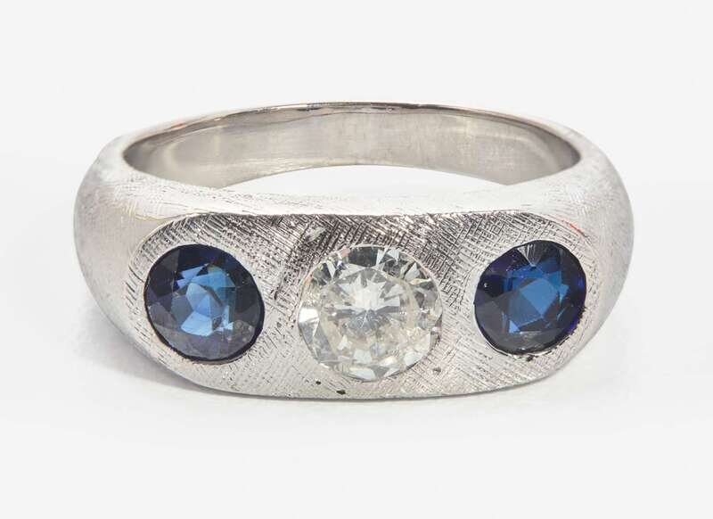 Sapphires: Two round-cut sapphires each measuring approximately 4.80mm, with some scratches, wear, and abrasions.