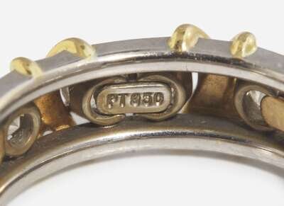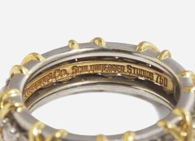 Overall Condition: Very scratched and worn, stamped “TIFFANY & CO. SCHLUMBERGER STUDIOS 750 PT950”, accompanied by box, bag, and receipt showing repair.