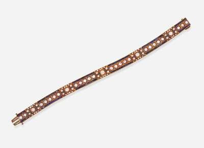 Diamonds: Ninety round brilliant-cut and single-cut diamonds measuring from approximately 1.20mm at the smallest to approximately 3.85mm at the largest, near colorless (G – J), with SI – I clarity. Total estimated weight of diamonds: 3.35 carats.