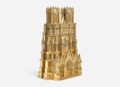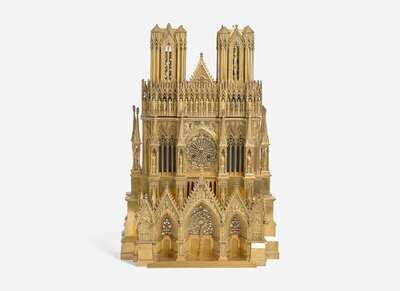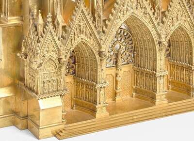 A French gilt bronze mantel clock in the form of Reims Cathedral, Pierre-Honoré-César Pons (1773-1851), Paris, second quarter 19th century