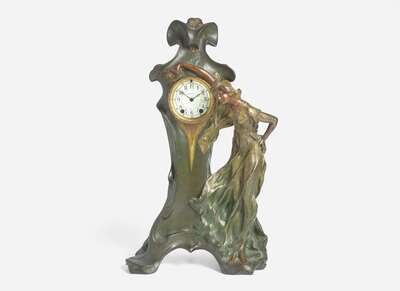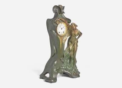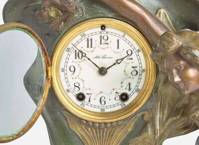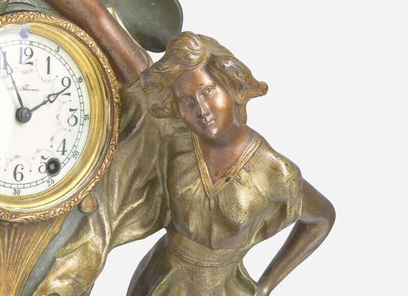An Art Nouveau figural cold-painted bronze clock, Seth Thomas Clock Co. (founded 1813), Thomaston, CT, circa 1890