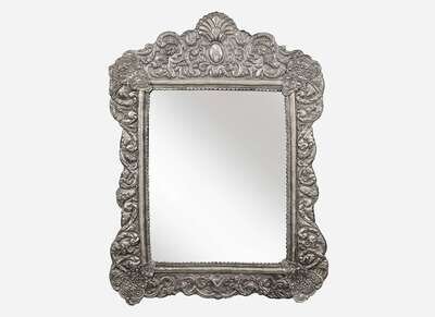 A Spanish Colonial style silver or silverplated repoussé mirror, 20th century
