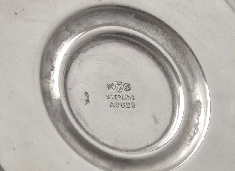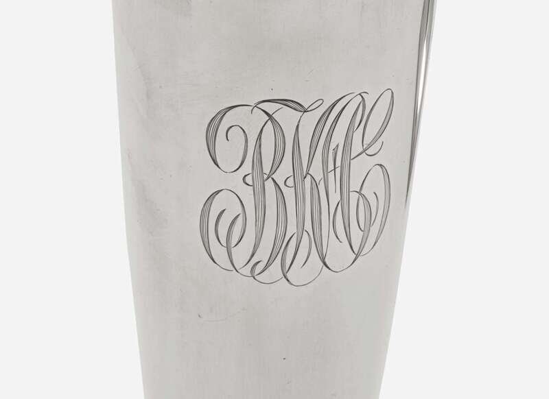 With Greek Key borders, each engraved with monogram, “BKA,” marked to underside.