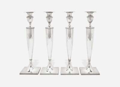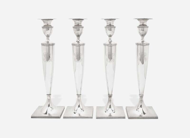 A set of four Neoclassical weighted sterling silver candlesticks, Gorham Mfg. Co, Providence, RI, bearing date mark for 1917