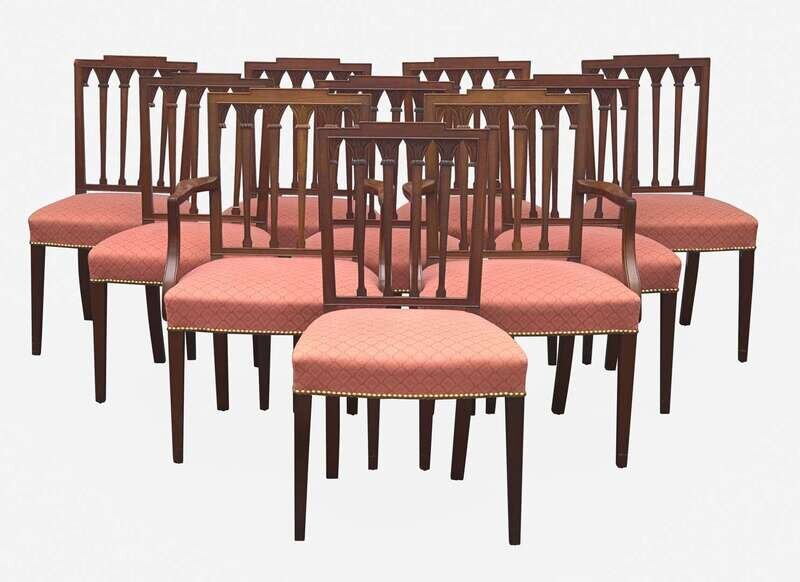 A set of ten Federal style square-back carved mahogany dining chairs, in the manner of Salem, MA, late 19th / early 20th century