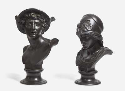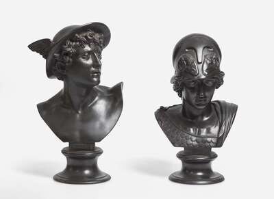 Two Wedgwood black basalt busts depicting Mercury and Minerva England, late 19th century