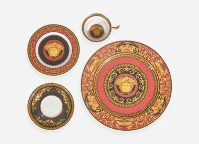 A Versace enameled porcelain part dinner service in the "Medusa" pattern, produced by Rosenthal Studio Line, Germany, modern