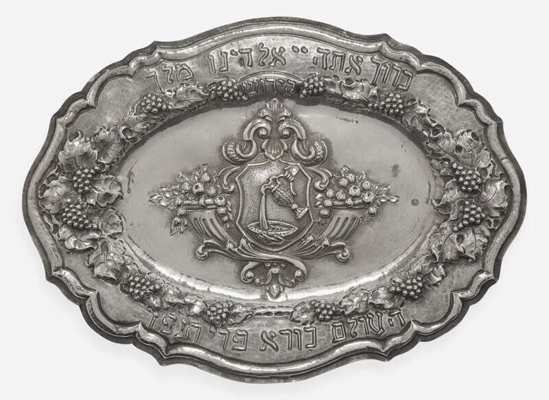 A silver repoussé Kiddush plaque, 20th century