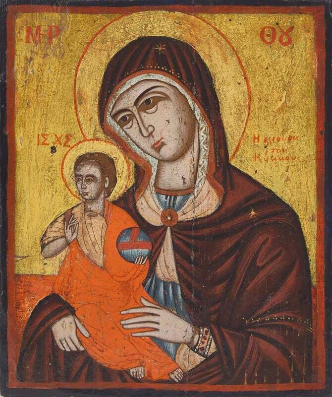 A Greek Icon of the Virgin Mary with Christ Child in the Manner of the Cretan School, 18th century