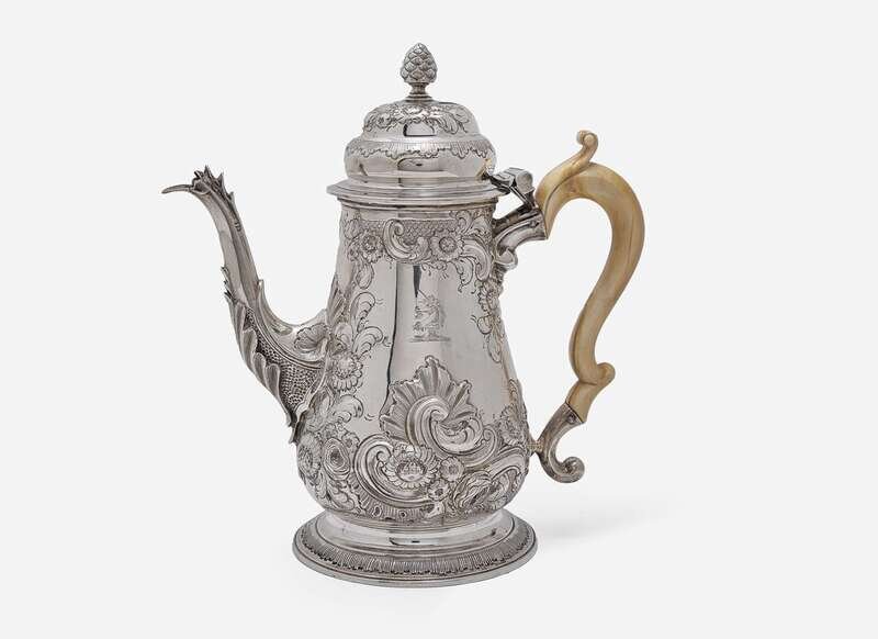 A George II sterling silver coffeepot, Thomas Moore II, London, 1755