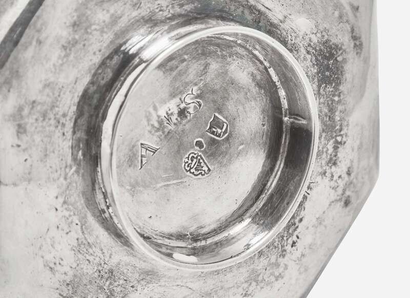Dia: 8 in. (larger salver), Dia: 3 7/8 in. (smaller tray, at widest), Total weight: 14.61 oz. t.