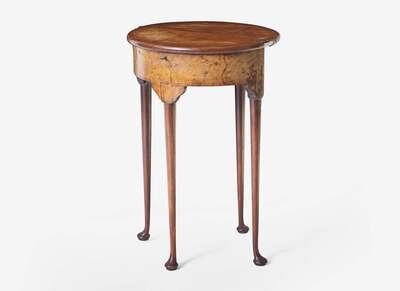 A diminutive Queen Anne burl walnut demilune games table, probably 19th century