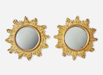 A pair of giltwood sunburst mirrors, 20th century