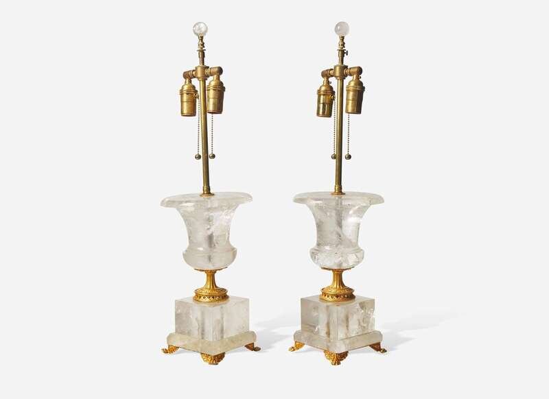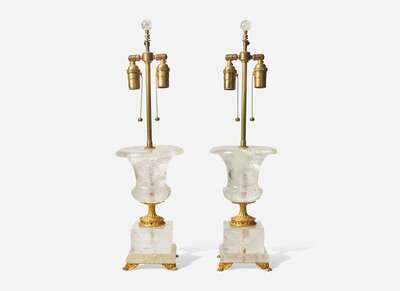 A pair of Neoclassical style gilt bronze-mounted rock crystal table lamps, 20th century