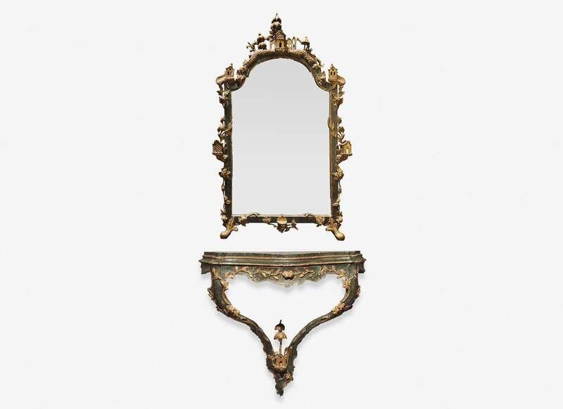 A Venetian "Chinoiserie" carved and painted console table and mirror, 18th century