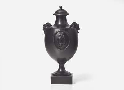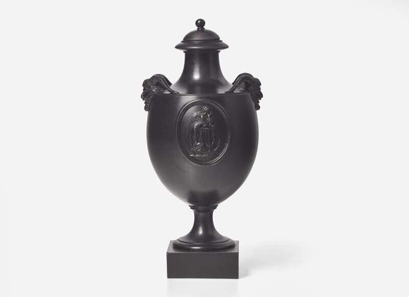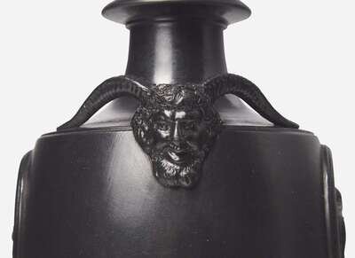 A Wedgwood & Bentley Black Basalt Vase and Cover with Satyr Head Handles, UK, 1770s