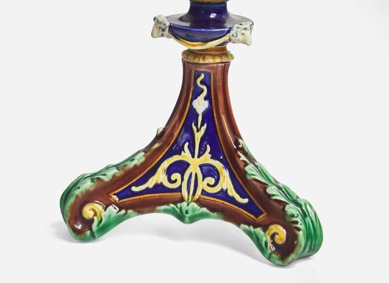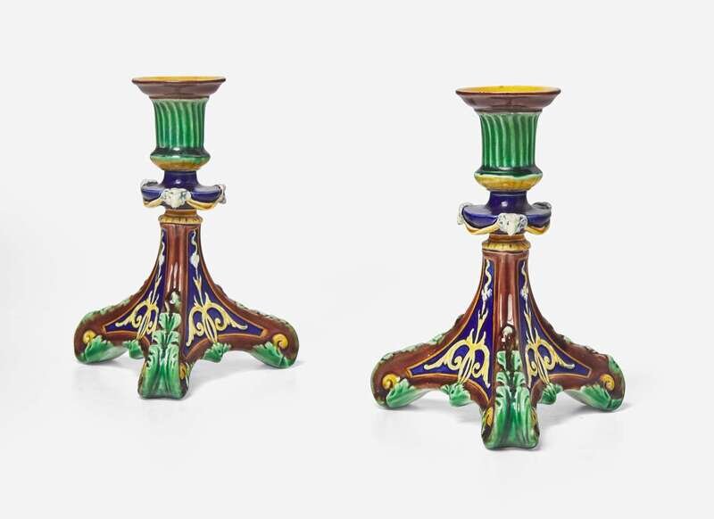 A Pair of Wedgwood Majolica Candlesticks, UK, 1875