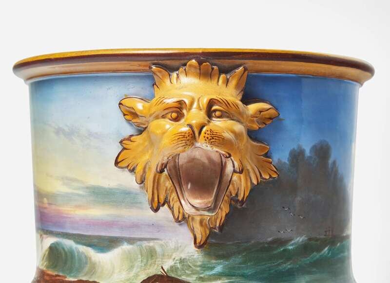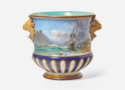 Both sides painted with elaborate scenes of wrecked ships on the shore