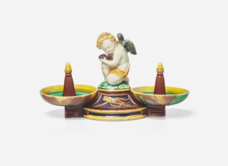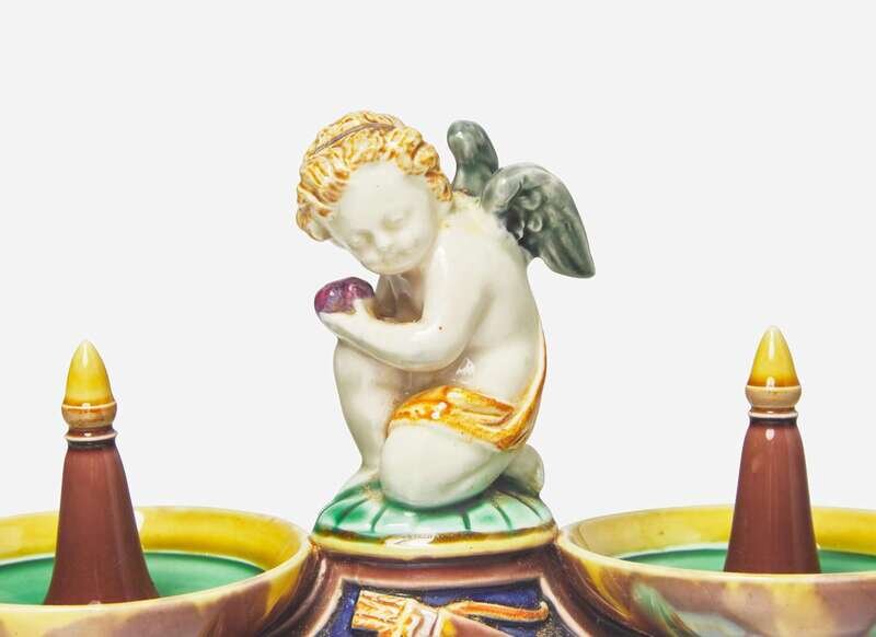 A Wedgwood Majolica Figural Double Ring Tray, UK, circa 1875