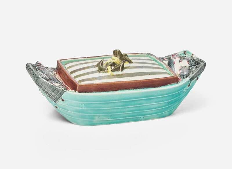 A Wedgwood Argenta Ware "Sardinia" Boat-Form Sardine Box, UK, 1878