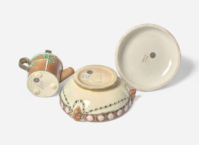 A Wedgwood Majolica Butter Dish and Creamer, UK, circa 1875