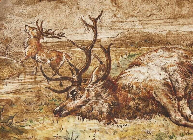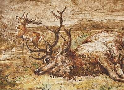 In the style of Emile Lessore (1805-1876), based on “The Dead Stag” drawing by Sir Edwin Landseer (1802-1873)