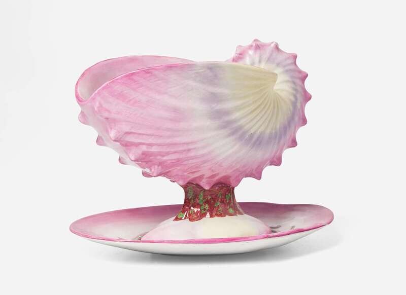 A Wedgwood Pearlware Conchology Sauce Boat and Stand, UK, 1878