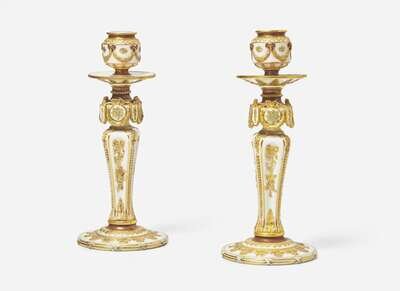 A Pair of Wedgwood Victoria Ware Candlesticks, UK, 1880s