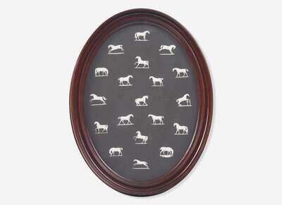 The designs after George Stubbs (1724-1806), modeled by Edward Birch (1730-1814); a total of 18 reliefs in white on a large solid black oval-shaped Jasperware plaque